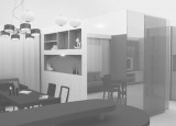 บ้านพักอาศัย 3 ชั้น พื้นที่ออกแบบประมาณ 170 ตร.ม. ออกแบบ Modern Style กั้นพื้นที่เป็นสัดส่วนเหมาะสมกับการใช้งาน มีการเจาะช่องและใช้กระจกเพื่อให้พื้นที่มีความเชื่อมต่อถึงกัน เน้นการใช้ไม้ทำสีขาวและเพิ่มลูกเล่นด้วยการทำสีไม้ธรรมชาติในส่วนที่เป็นช่องโล่งและชั้นด้านในเฟอร์นิเจอร์