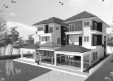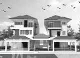บ้านพักอาศัย 3 ชั้น ในรูปแบบร่วมสมัย ด้วยวัสดุธรรมชาติและรูปทรงที่เรียบง่าย ถูกกำหนดให้สามารถใช้สอยพื้นที่ได้มากที่สุด ด้วยข้อจำกัดทางพื้นที่ที่ค่อนข้างเล็ก ตัวบ้านจึงถูกออกแบบให้เป็นรูปตัวแอล (L) และมีพื้นที่สันทนาการร่วมกันบริเวณกลางบ้าน ระหว่างบ้าน 2 หลัง โดยใช้เป็นพื้นที่จัดส่วน และนั่งเล่นบริเวณศาลาหน้าบ้าน