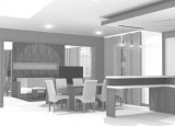 บ้านพักอาศัย 3 ชั้น ภายในโครงการ Noble Residence พื้นที่ออกแบบประมาณ 235 ตร.ม. ออกแบบภายใต้แนวความคิด Contemporary Classic Style แบ่งพื้นที่ใช้สอยออกเป้นสัดส่วน เน้นการใช้ไม้สองโทนสีและคิ้วลูกฟักในการตกแต่ง ประกอบกับการใช้กระจกลามิเนตฝังผ้าและผนังสีอ่อน เพื่อให้บ้านดูอบอุ่น